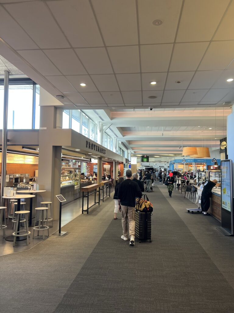 搭乗まで時間があったので、搭乗ゲートを端まで散歩してみました。奥の方まで歩いて行ってみると急に景色が変わって、カフェや売店のあるエリアになりました。