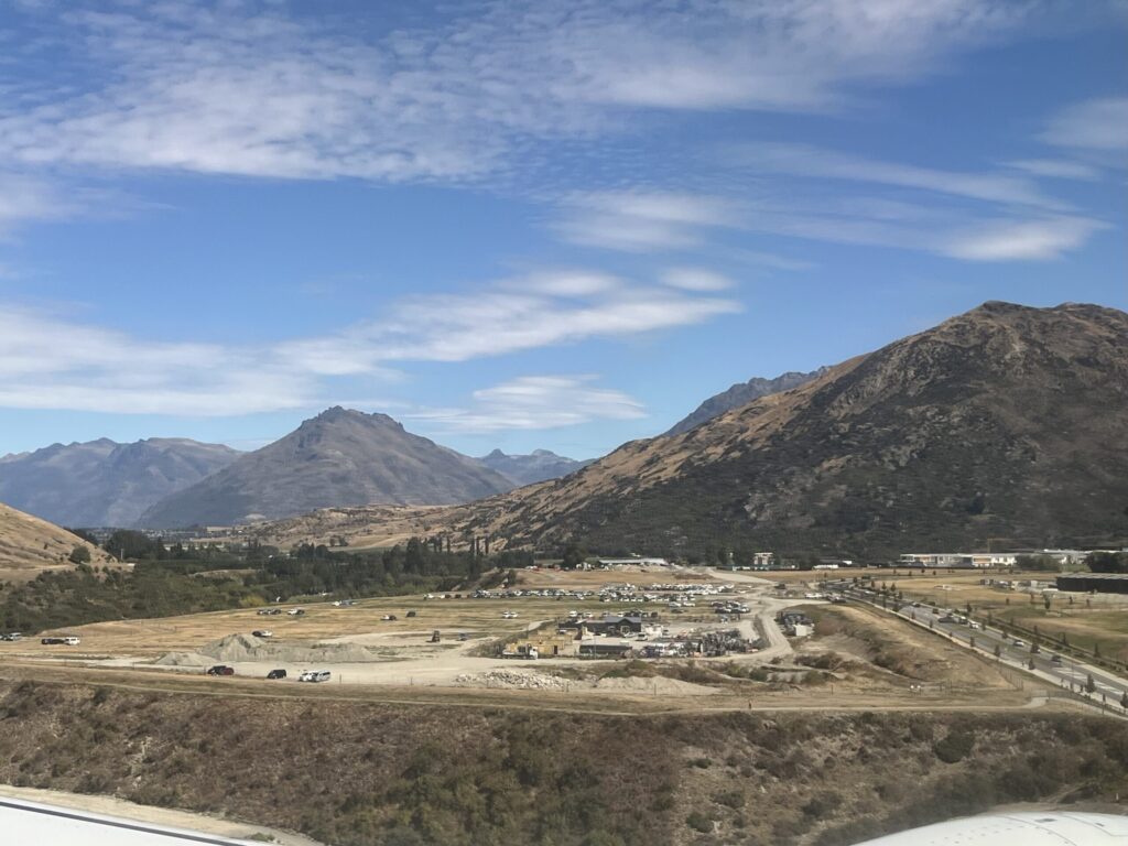 前回来た時には、1回目は強風に煽られて着陸を諦め、2回目で着陸に成功するという経験をしました。着陸体制に入ってから結構ふらついて怖かったのを覚えています。谷あいにあるクーンズタウンのこの地形がそうさせるのでしょうか?