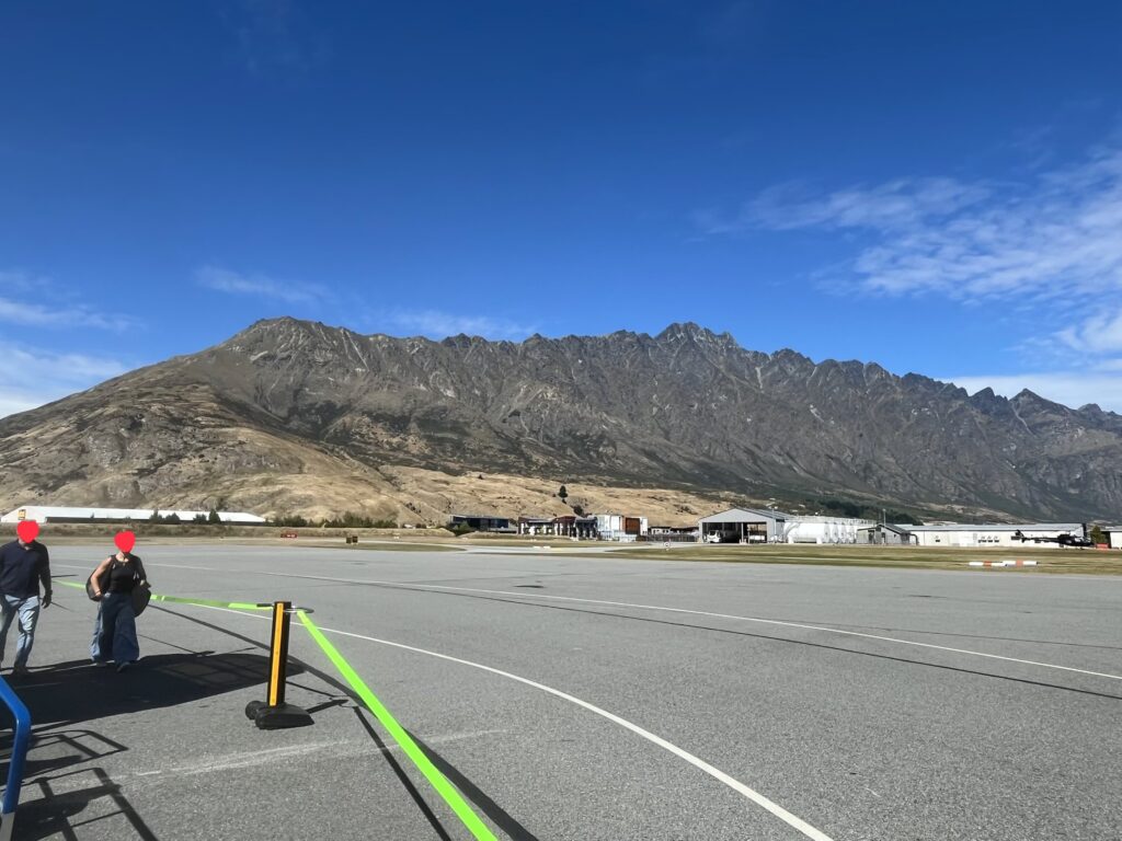 飛行機から降りるとクイーンズタウンを象徴する山「ザ・リマーカブル」がお出迎え。