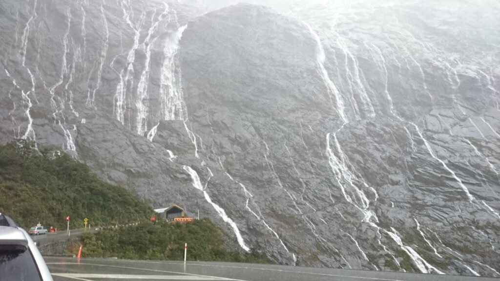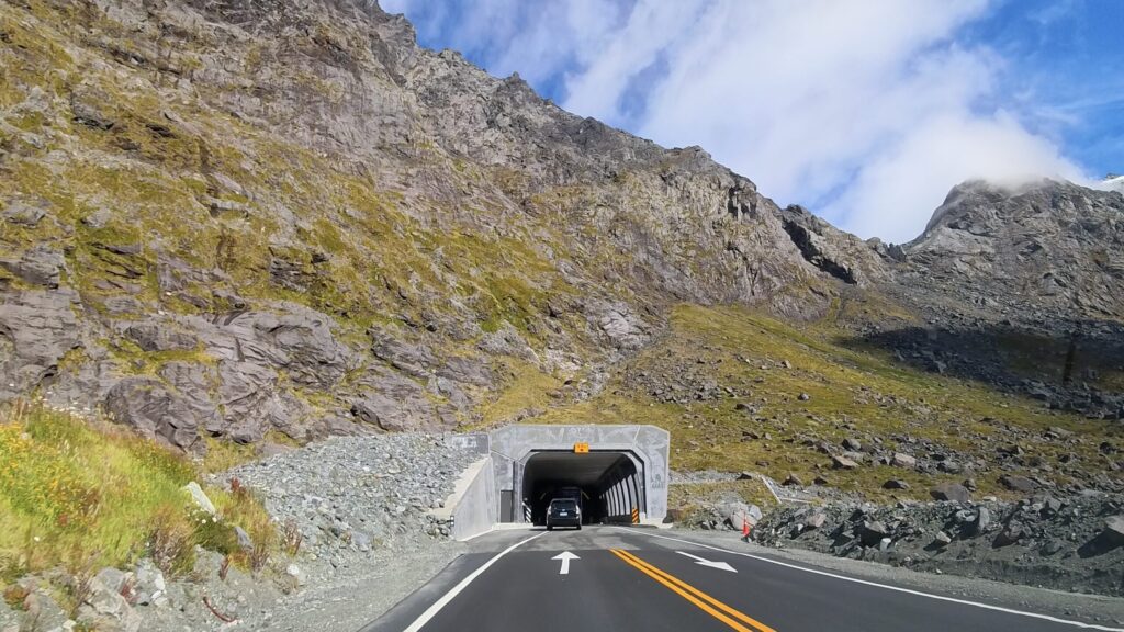 真っ暗で違う世界に連れていかれそうなホーマートンネル。ここを過ぎると程なくしてミルフォードサウンドに到着です。
