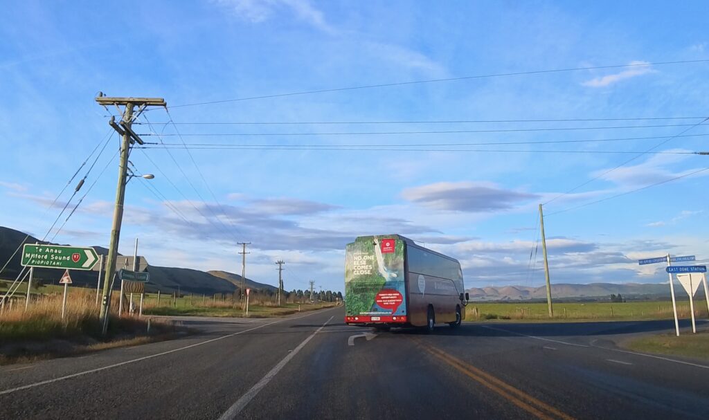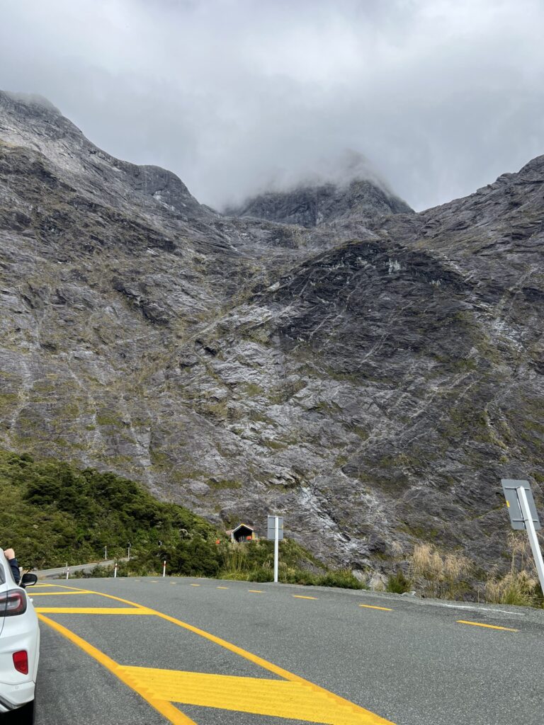 クルーズ船に乗る時間が13:15と決まっていて遅れることが許されません。なので、行きは途中のアテナウという街で休憩をするぐらいで、途中の観光スポットは素通りしてミルフォードサウンドに向かいました。実際は4.5 時間ほどかかりました。