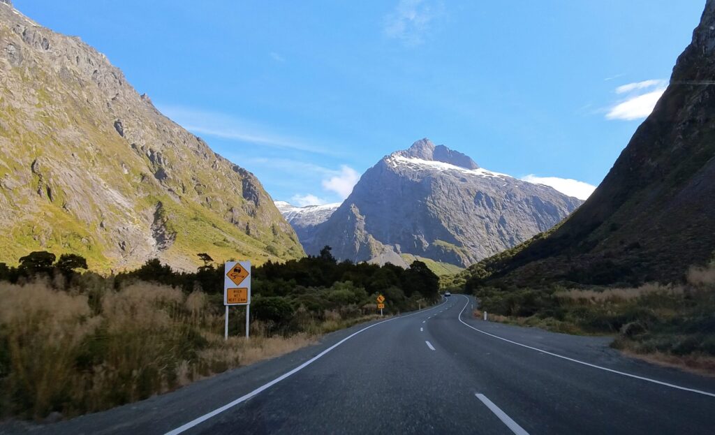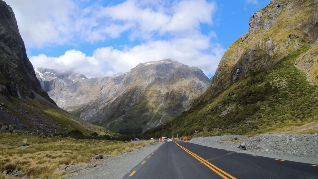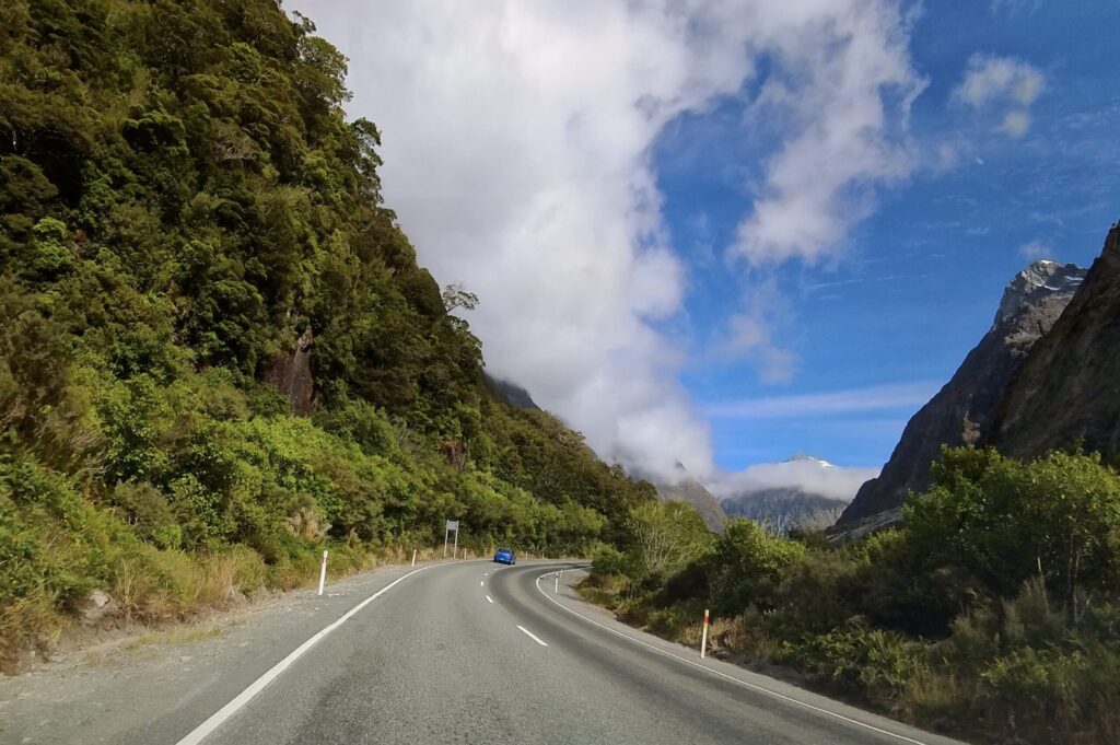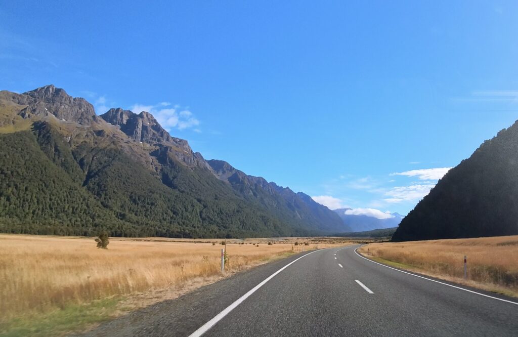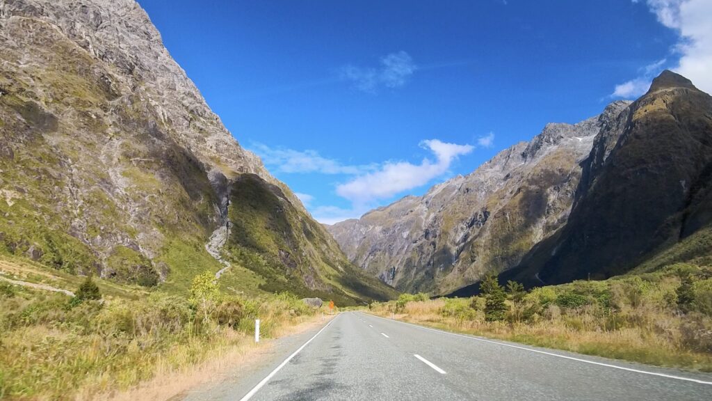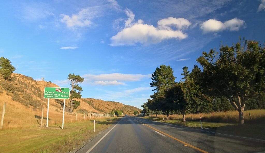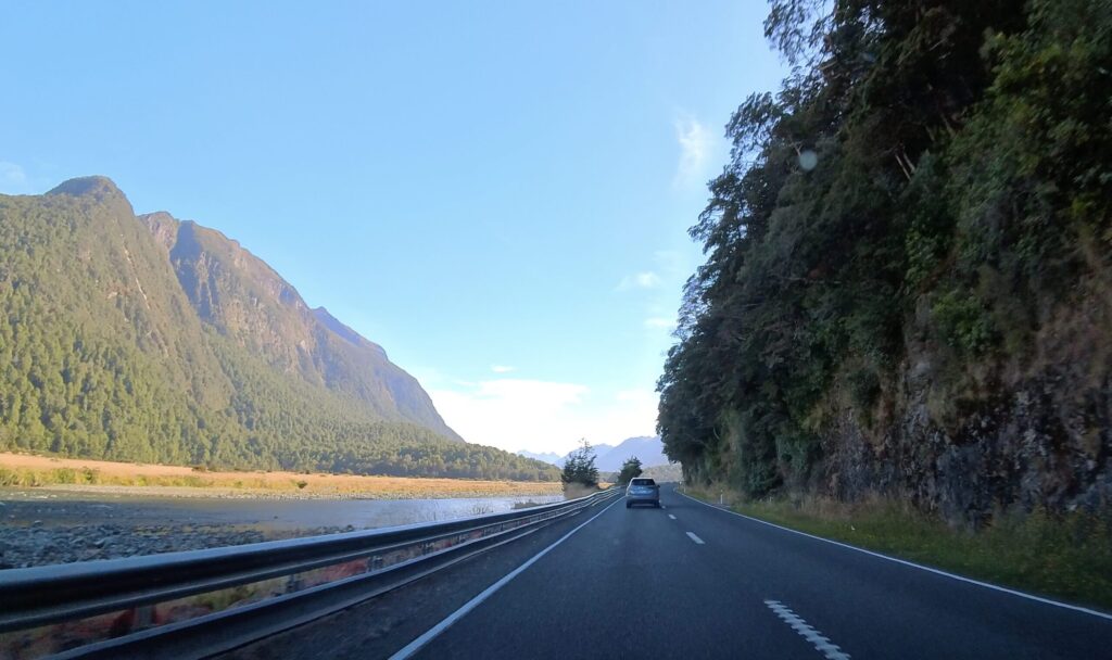 クイーンズタウンからミルフォードサウンドまでは、Googleマップによると距離289km、約4時間の道のりです。そんなロングドライブながらも、交差点で曲がるところはたったの2箇所しかないというわかりやすさでした。