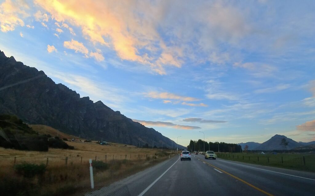 クイーンズタウン空港を抜けて6号線を南下。左にクイーンズタウンを象徴する山「ザ・リマーカブル」の麓を走り抜けていきます。