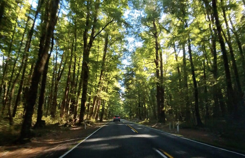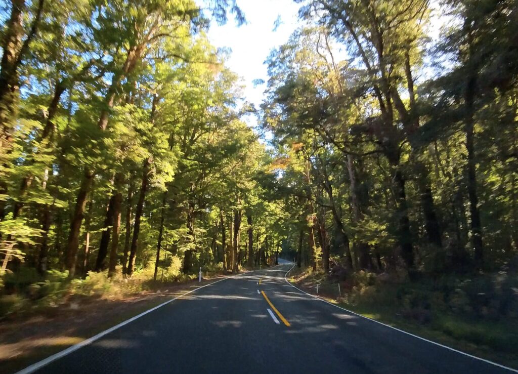 テアナウ湖から離れると、時折、森林の中を走る道が現れます。この景色の変化がまたたまりません。