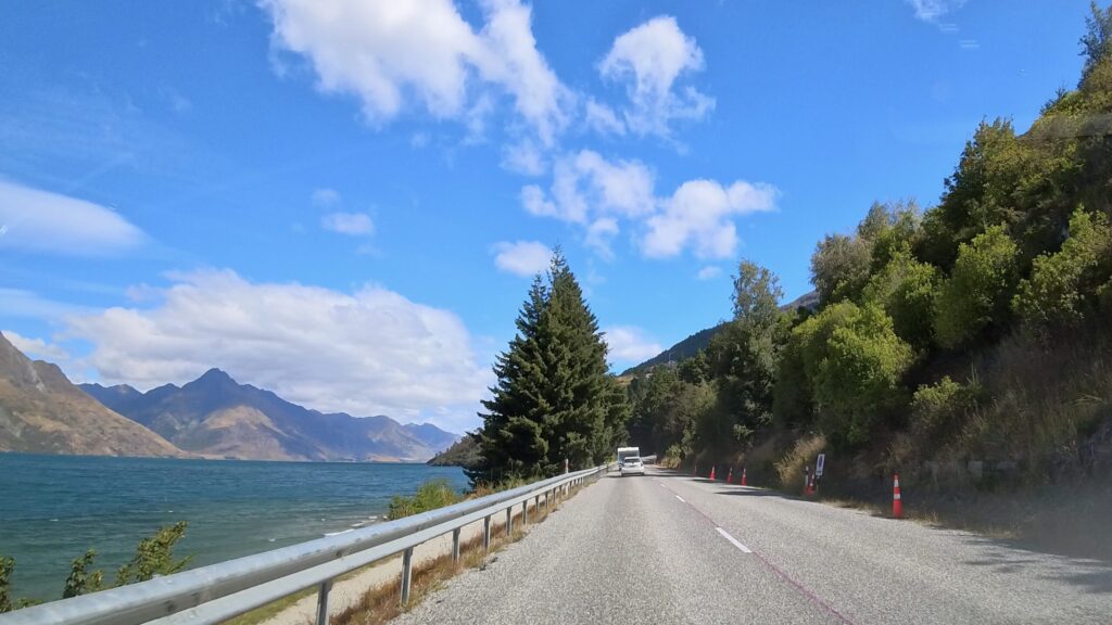 ここからはワカティプ湖の美しい青さに引き込まれながら、絶景ドライブを楽しんでいきました。