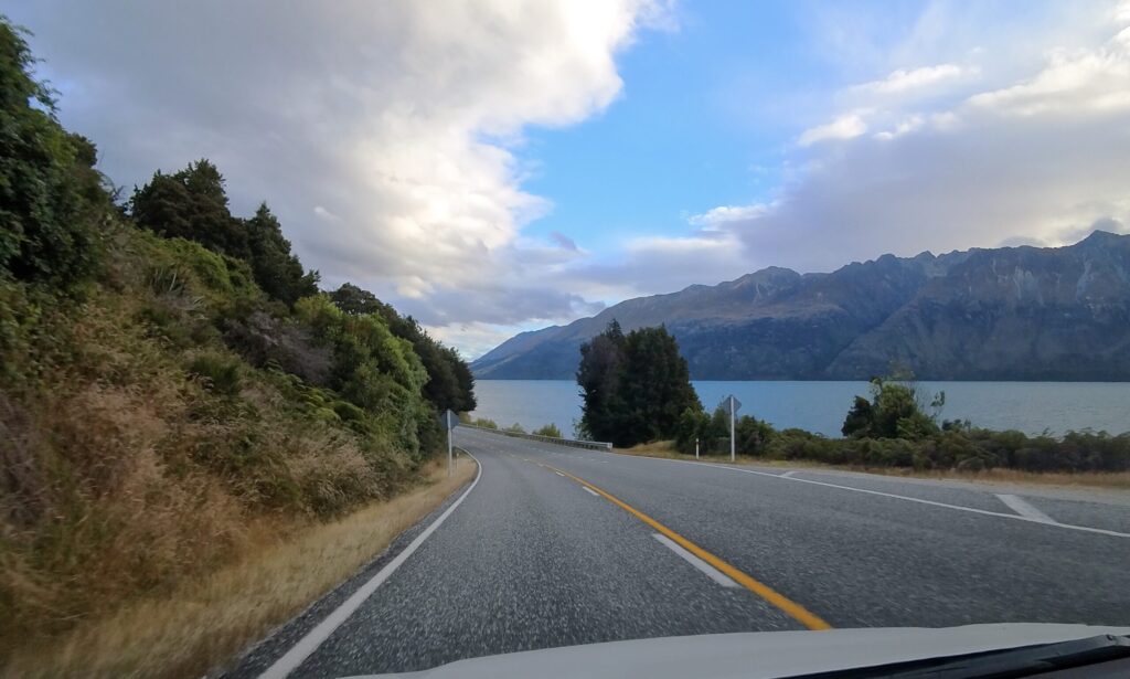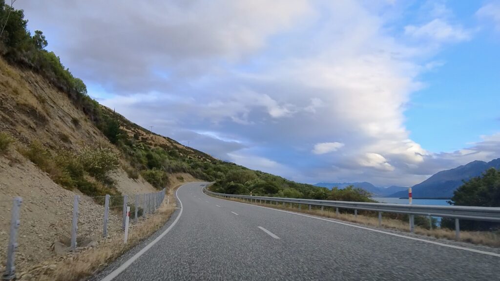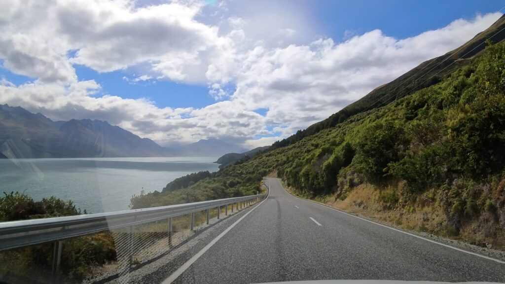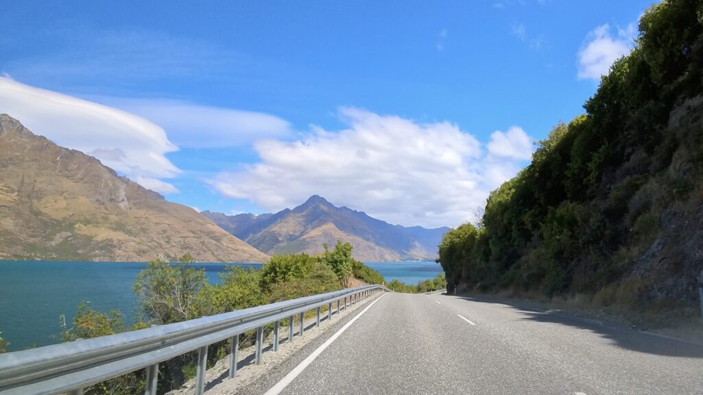 行きよりも帰りの方が、流れる景色がより素晴らしく感じました。角度的にワカティプ湖をしっかり視界に入ってくるからだと思いました。
