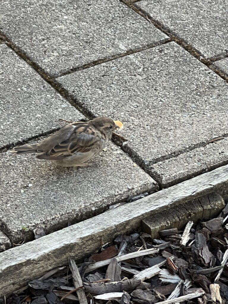 スズメさんが何やら欲しそうにしていたので、パンをお裾分け。