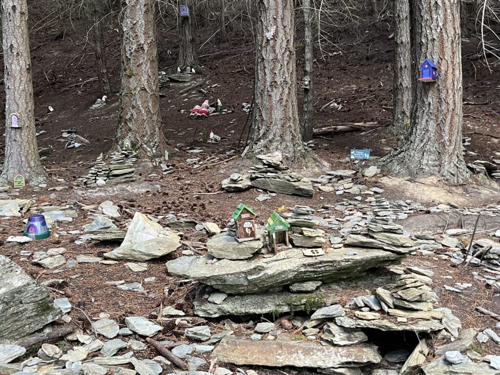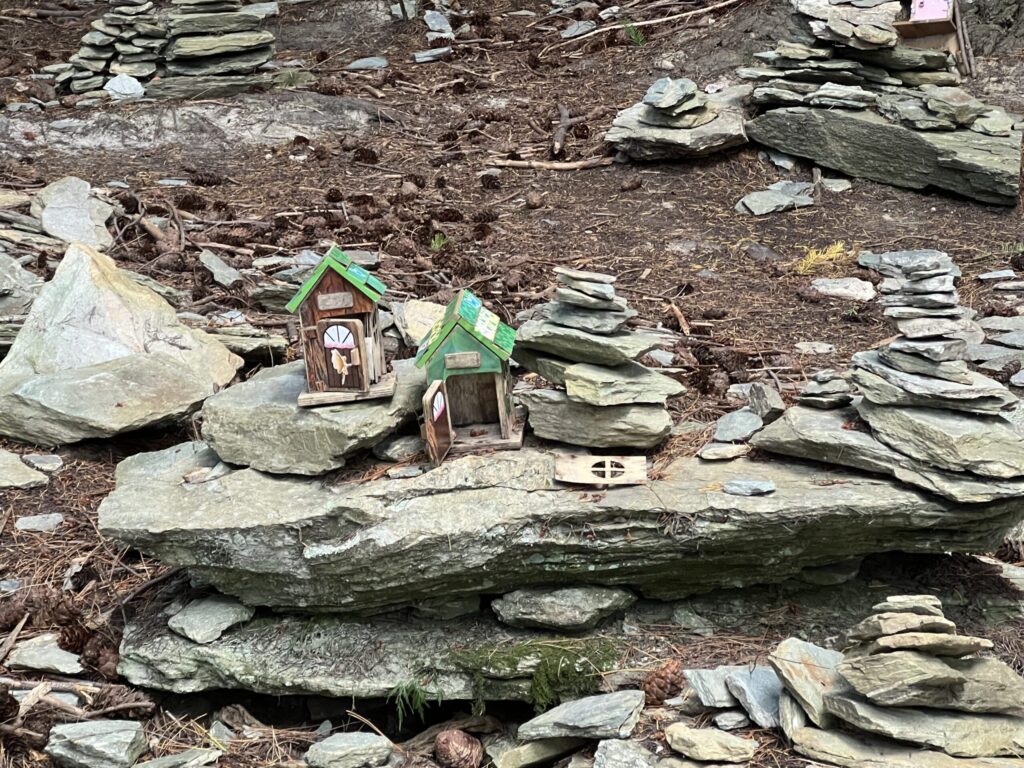 ここは「フェアリーズ・ミーティング・プレイス」と言って、その名の通り妖精の庭です。それは、岩が重ねられたガーデンの中に、小さな木製の家がいくつか飾られていました。そこに森の妖精が住んでいるということなんですね。