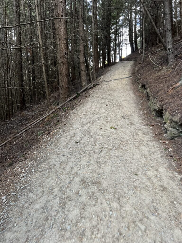 左が正規のコースで距離は短いが急、右は距離は長いが傾斜が緩いということだったので、迷わず、左の道を選択。