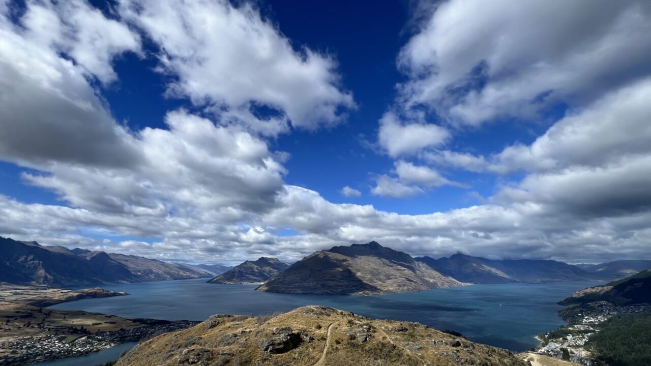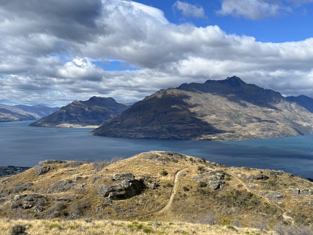 クイーンズタウンヒルウォークウエイは、標高約907mの頂上まで登る片道約4kmのトレッキングコースです。市街地からの高低差は約500mあり、約3〜4時間の往復でワカティプ湖の絶景を楽しめる人気のコースで、初級から中級者向けだそうです。
