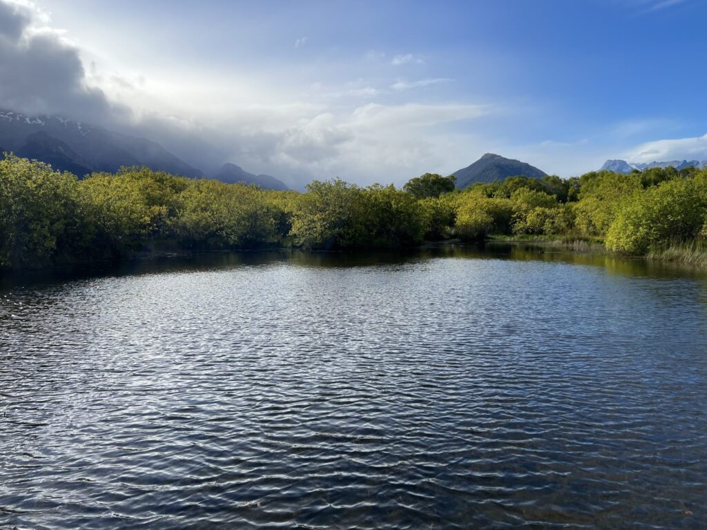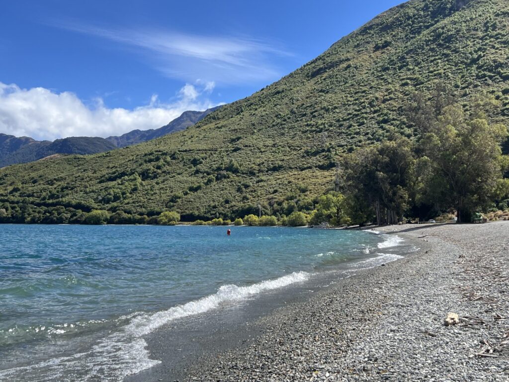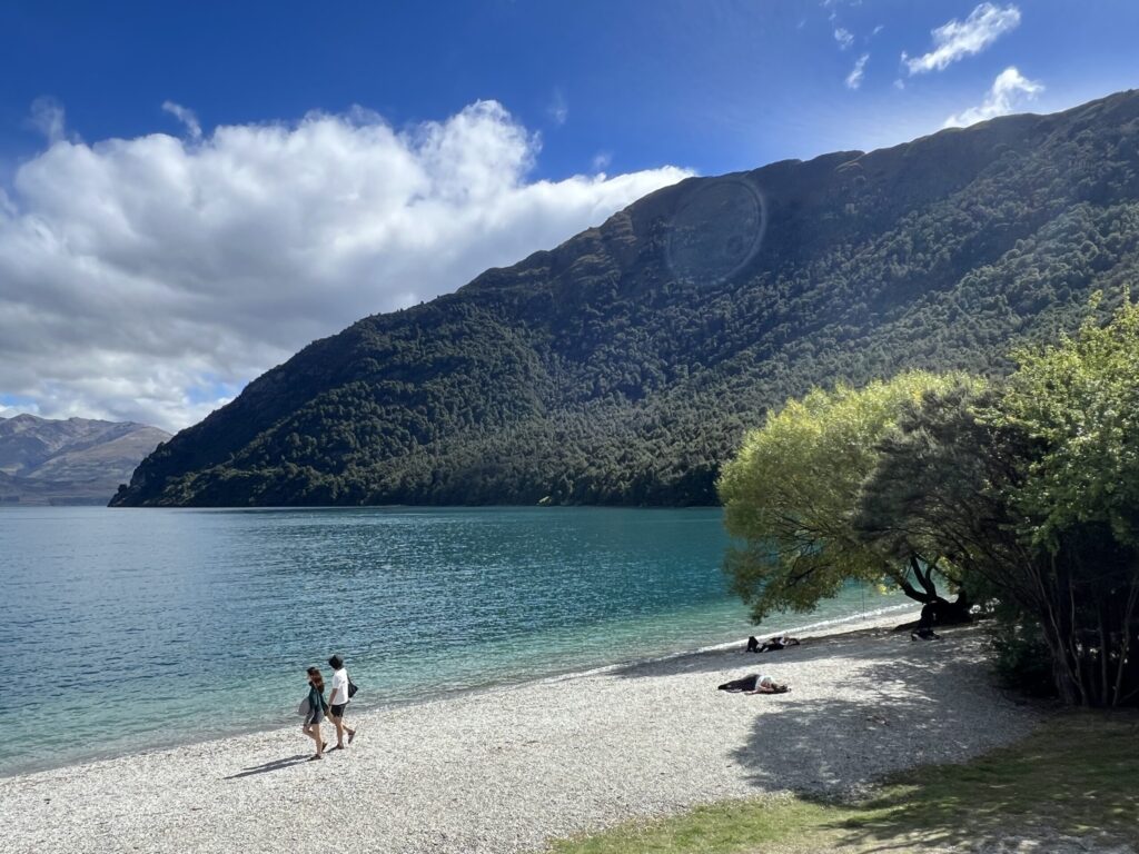 グレノーキーウォーターフロント保護区と呼ばれているワカティプ湖湖畔を散策しました。