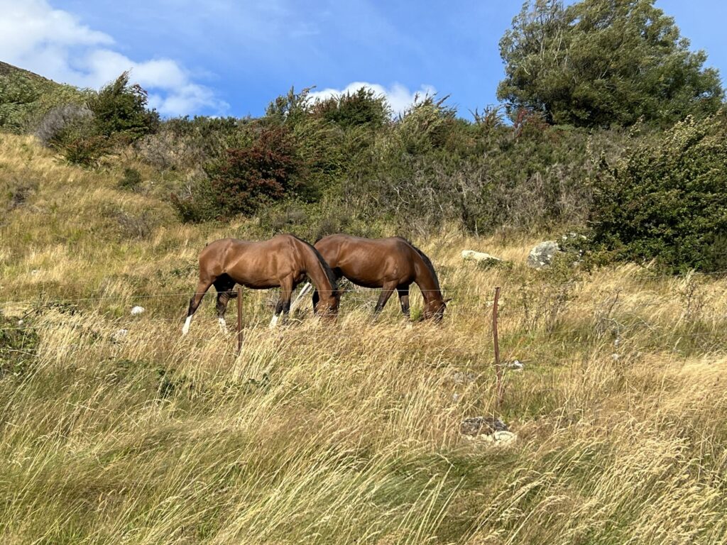 ふと右を見ると馬が放牧されていました。のどかです。