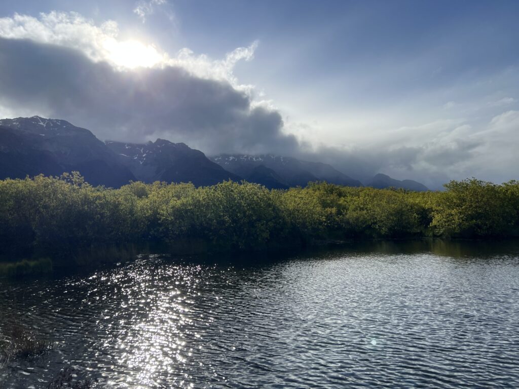 そして、グレノーキーらしい雄大かつ神秘的な景色が見れてすごく良かったと思いました。風が強くて水面に波が立っていたので、山が反射して水面に綺麗に映るということがなかったのがちょっと残念なところでしたね。