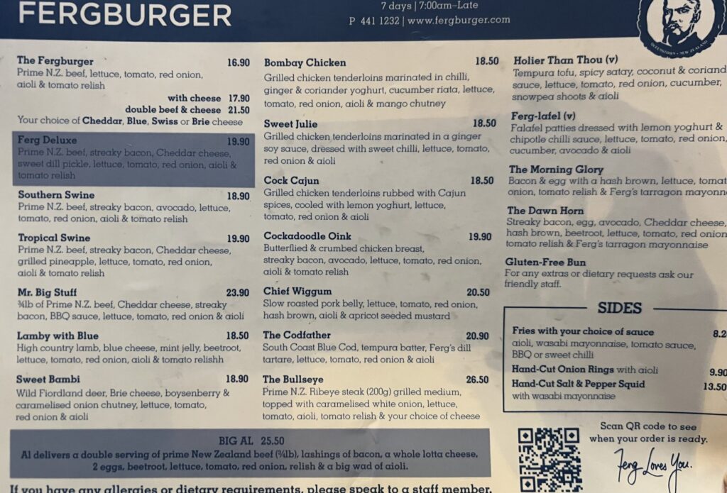 並んでいる間、店員さんがメニューを配ってくれました。ここは迷わず、編みかけをしていてオススメだろう「ファーグデラックス」に決めました。