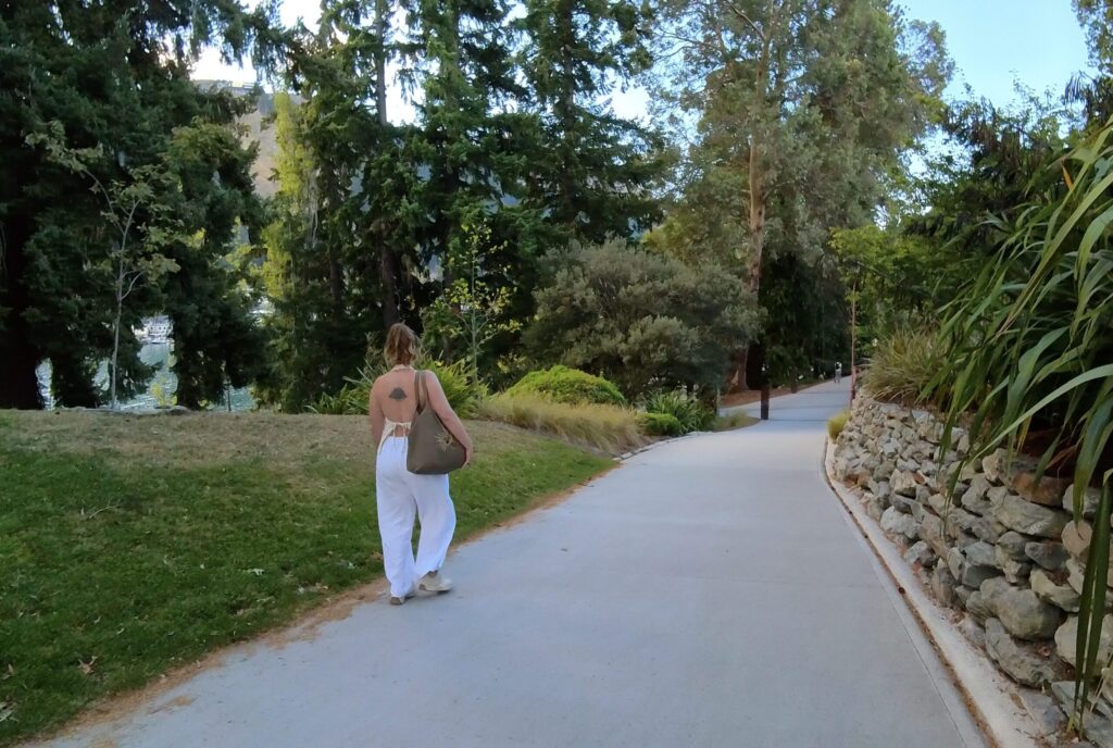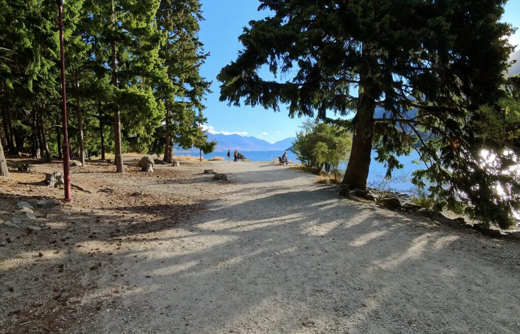 一旦ホテルに戻り小休止したあと、18:30過ぎ、湖岸を歩いてクイーンズタウンガーデンに向かいました。ホテルが街に近いと本当に便利です。