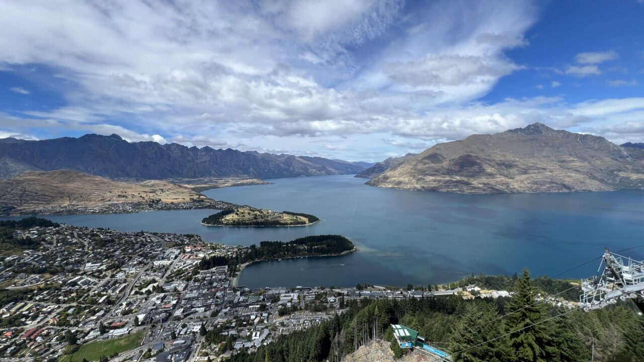 ゴンドラを降りると、この絶景です。前日に見たクイーンズタウンヒルの頂上から見た景色とはまた違って、まさにThis is Queenstown!という景色です。