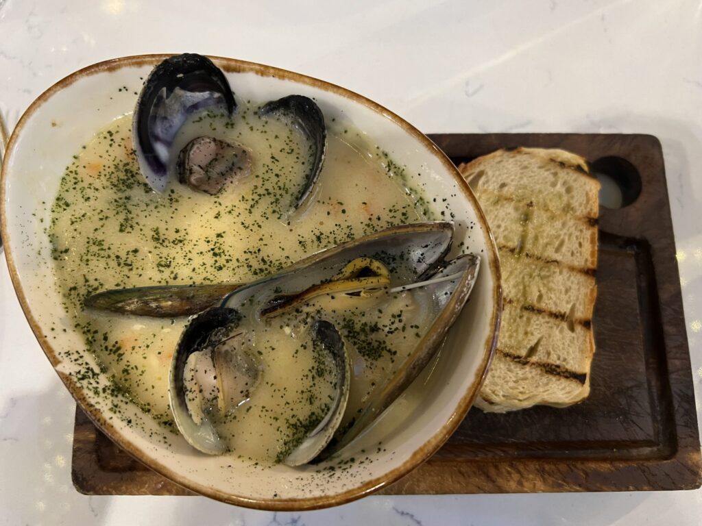 ムール貝入りのクラムチャウダー。正直シアトルの方が美味しかったかな。