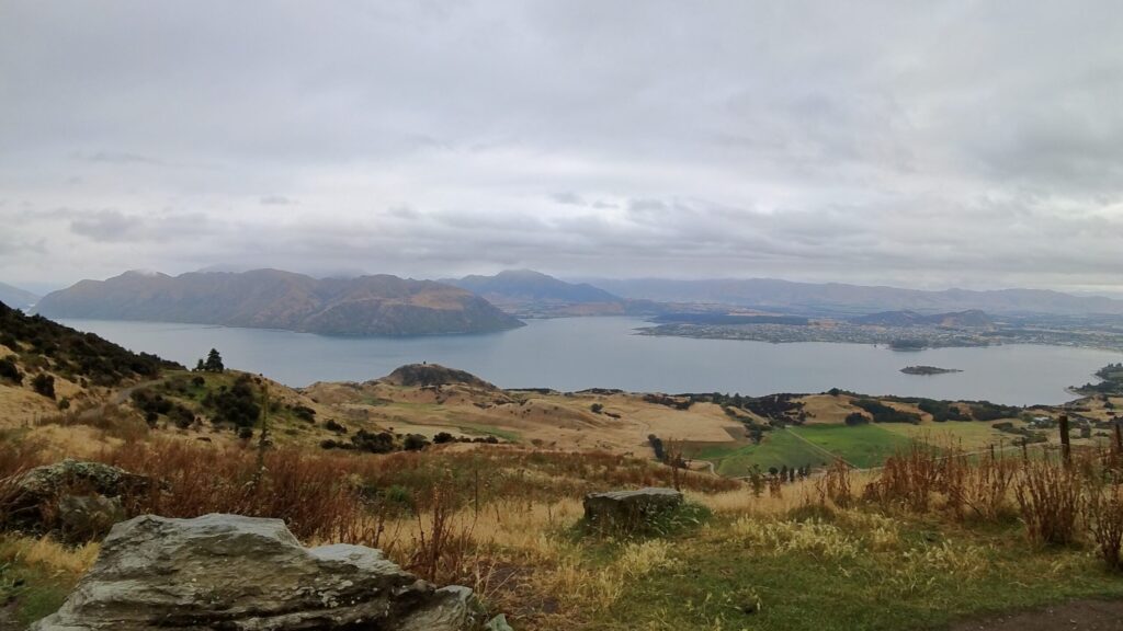 ここからの景色でも十分絶景です。ワナカ湖とそれを囲む山々を見晴らすことができました。
