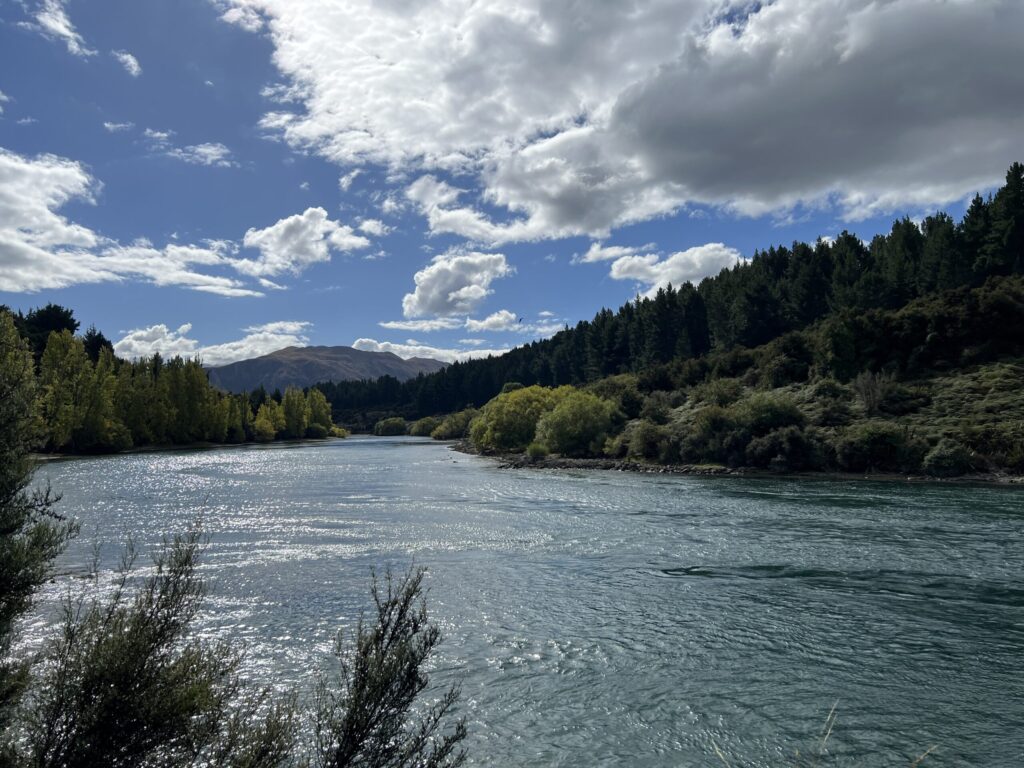 実はこのコースは、以前に来た時に同僚たちとレンタルバイクで走ったコースだったのです。その時にこのClutha riverの清流さとその景色にものすごく感動して、その風景を奥様に見せてあげたかったのです。