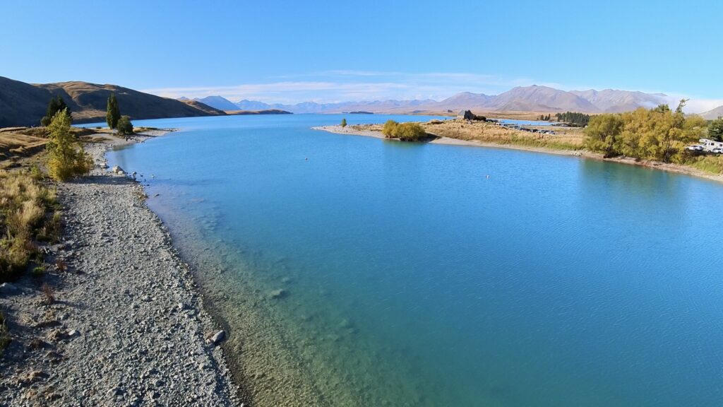 見えてきたプカキ湖を見て、「うわー青い!」と思わず叫んでしまいました。それほどこの色は、初めてで衝撃的なブルーだったのです。
