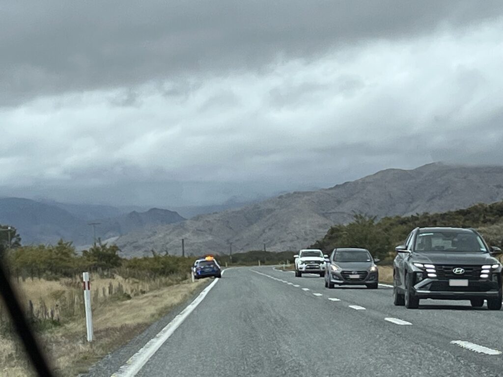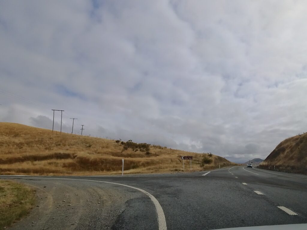 9:45にワナカを出発し、6号線、8A号線と、北海道の景色にも似た大平原の中ひた走っていきました。そして8号線に入るために左折する交差点で待っていると、珍しいシーンに遭遇しました。