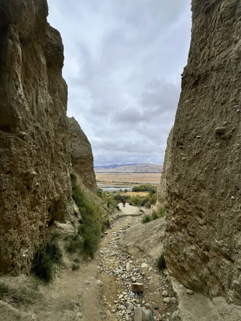 ひとしきり岩山を堪能し折り返して戻っていくと、岩の隙間から平原がのぞいていました。