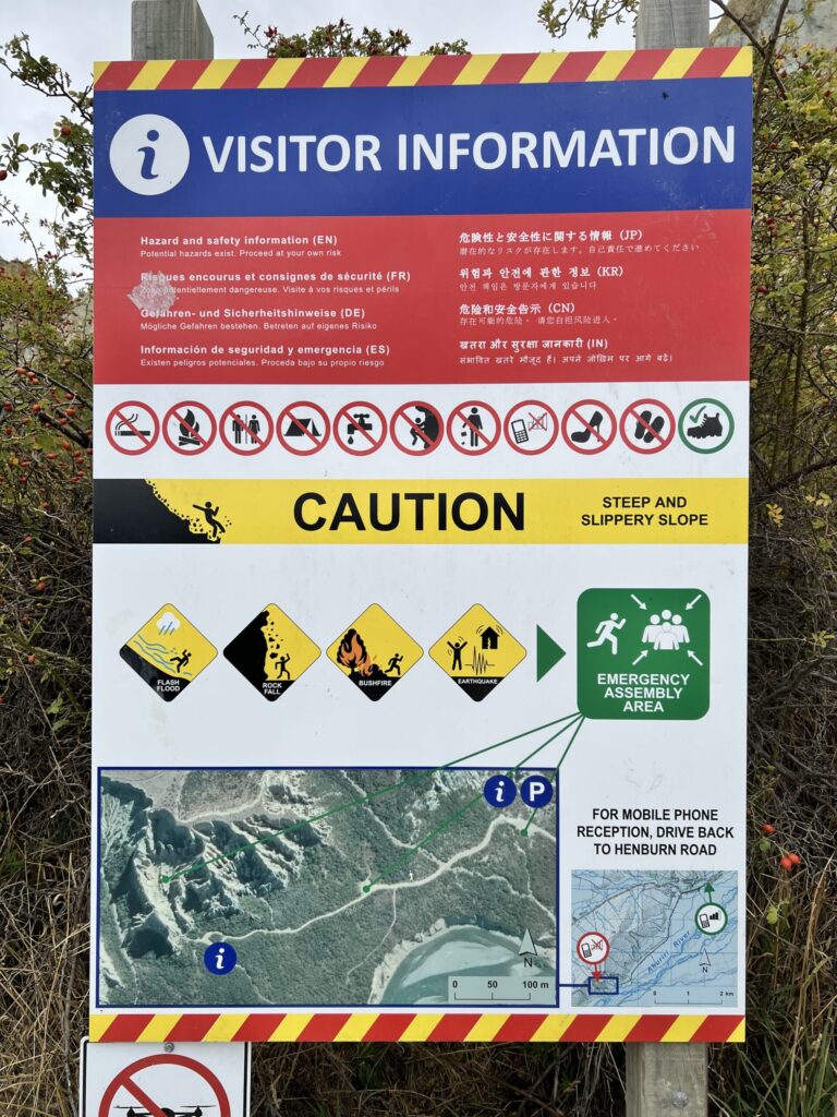 少し進むと別の看板がありました。落石、地震など危険が潜んでいるので注意とのこと。行ってみてそのことがよくわかりました。