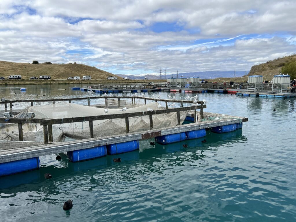 クルマから降りるともうサーモンの養殖場が見えていました。