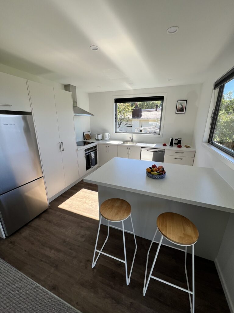 キッチンも広々。オーナーさんがフルーツなどサービスで置いておいてくれました。感謝!感謝!