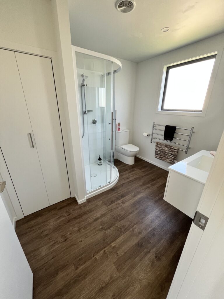 こちらが洗面所とシャワールームとトイレ。トイレはこことは別に個室がありました。またこの写真の左の扉を開くと乾燥機付きの洗濯機がありました。長旅だとほんと助かります。