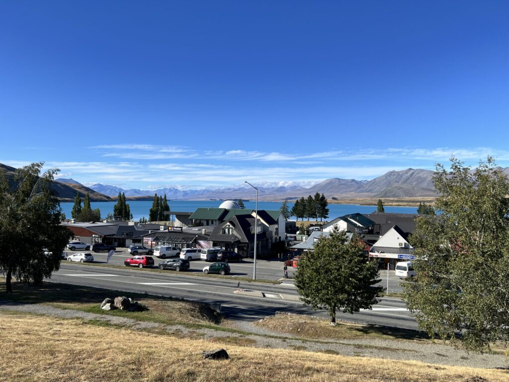 その景色を通り過ぎ、芝生を下っていくとすぐにテカポの繁華街です。
