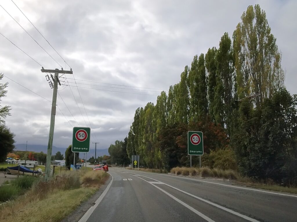 オマラマの町を過ぎ、クレイクリフの茶色い看板のあるこの交差点を左折。